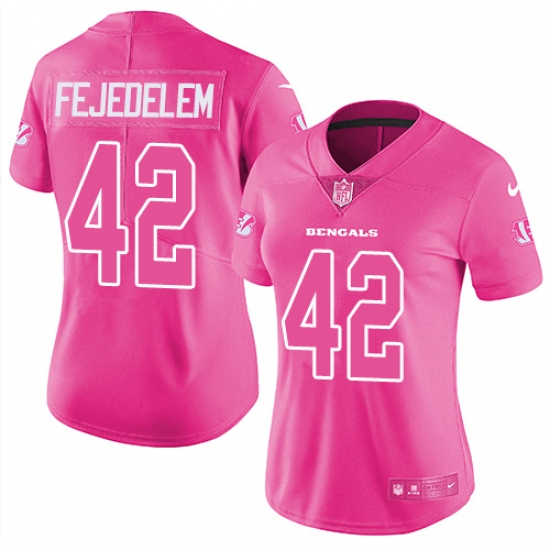 Home>NFL>Cincinnati Bengals>Clayton Fejedelem>Women's Nike Cincinnati Bengals #42 Clayton Fejedelem Limited Pink Rush Fashion NFL Jersey