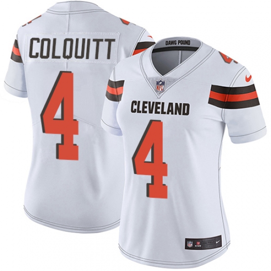 Women's Nike Cleveland Browns #4 Britton Colquitt White Vapor Untouchable Limited Player NFL Jersey