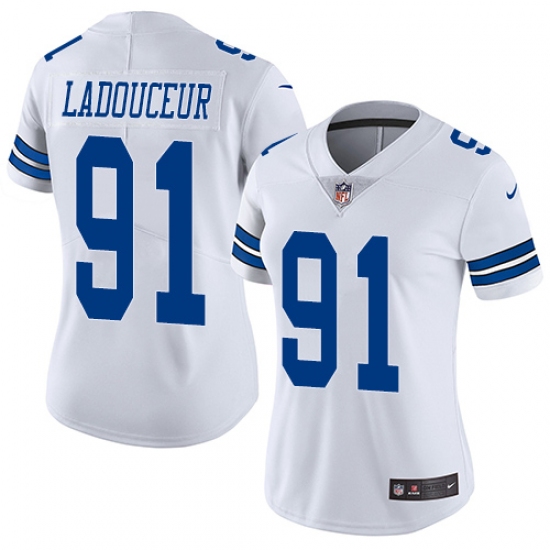 Home>NFL>Dallas Cowboys>L. P. Ladouceur>Women's Nike Dallas Cowboys #91 L. P. Ladouceur White Vapor Untouchable Limited Player NFL Jersey