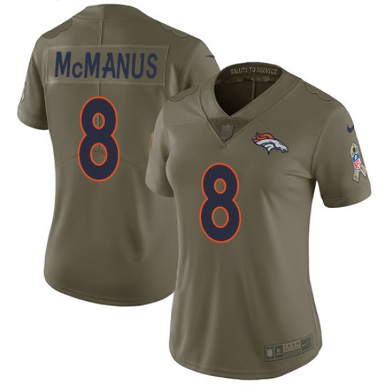 Women's Nike Denver Broncos #8 Brandon McManus Limited Olive 2017 Salute to Service NFL Jersey