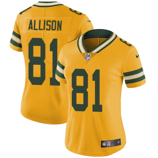 Home>NFL>Green Bay Packers>Geronimo Allison>Women's Nike Green Bay Packers #81 Geronimo Allison Limited Gold Rush Vapor Untouchable NFL Jersey