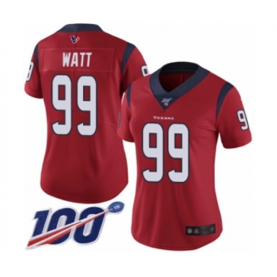 Women's Nike Houston Texans #99 J.J. Watt Red Alternate Vapor Untouchable Limited Player 100th Season NFL Jersey