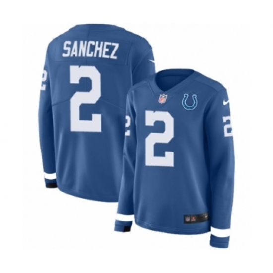>Women's Nike Indianapolis Colts #2 Rigoberto Sanchez Limited Blue Therma Long Sleeve NFL Jersey