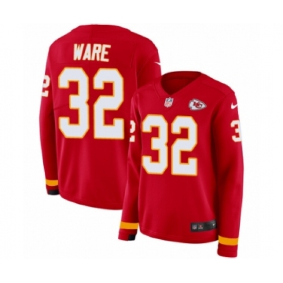 Women's Nike Kansas City Chiefs #32 Spencer Ware Limited Red Therma Long Sleeve NFL Jersey
