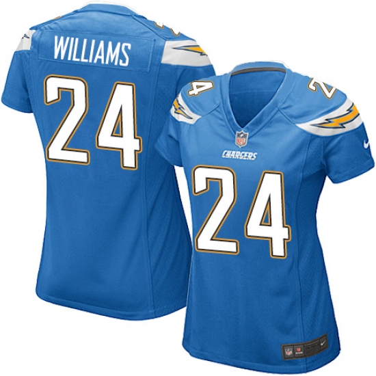 Home>NFL>Los Angeles Chargers>Trevor Williams>Women's Nike Los Angeles Chargers #24 Trevor Williams Game Electric Blue Alternate NFL Jersey