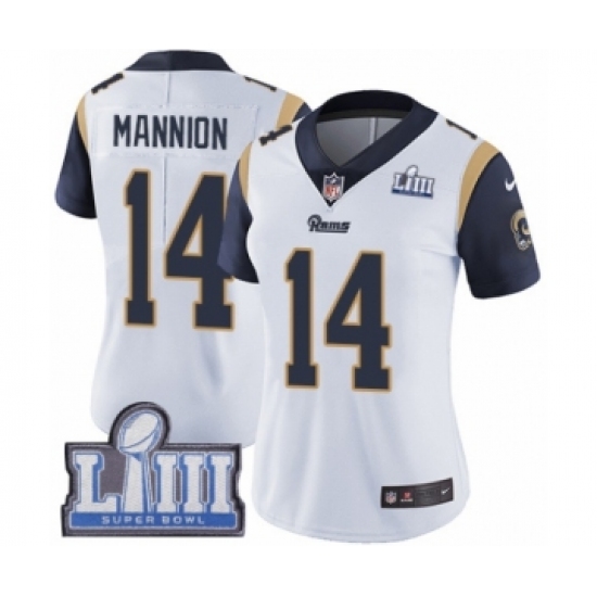 Women's Nike Los Angeles Rams #14 Sean Mannion White Vapor Untouchable Limited Player Super Bowl LIII Bound NFL Jersey