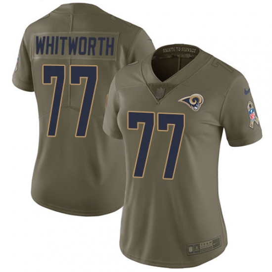 Home>NFL>Los Angeles Rams>Andrew Whitworth>Women's Nike Los Angeles Rams #77 Andrew Whitworth Limited Olive 2017 Salute to Service NFL Jersey