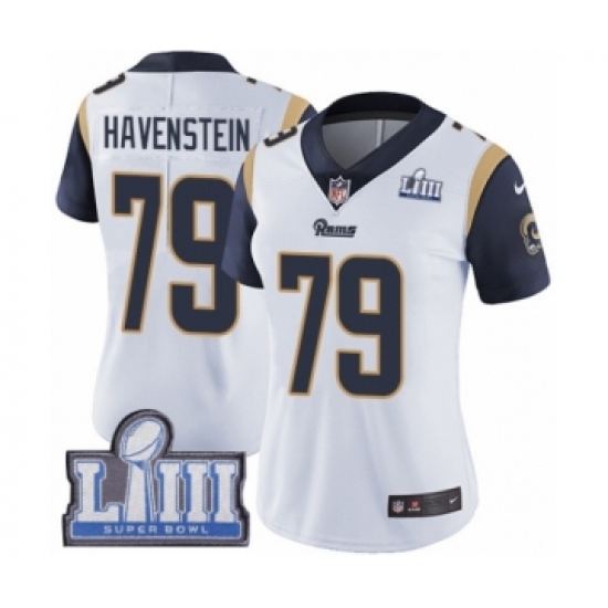 Women's Nike Los Angeles Rams #79 Rob Havenstein White Vapor Untouchable Limited Player Super Bowl LIII Bound NFL Jersey