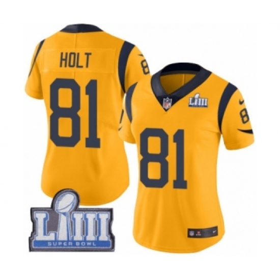 Women's Nike Los Angeles Rams #81 Torry Holt Limited Gold Rush Vapor Untouchable Super Bowl LIII Bound NFL Jersey