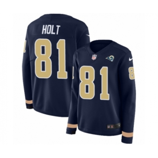 Women's Nike Los Angeles Rams #81 Torry Holt Limited Navy Blue Therma Long Sleeve NFL Jersey