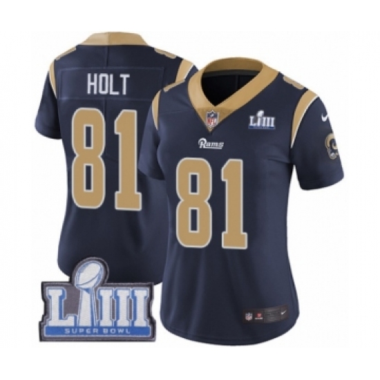 Women's Nike Los Angeles Rams #81 Torry Holt Navy Blue Team Color Vapor Untouchable Limited Player Super Bowl LIII Bound NFL Jersey