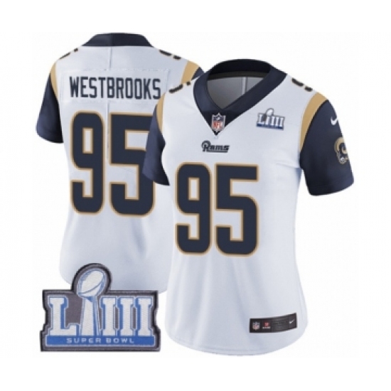 >Women's Nike Los Angeles Rams #95 Ethan Westbrooks White Vapor Untouchable Limited Player Super Bowl LIII Bound NFL Jersey