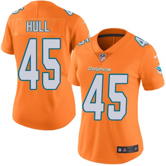Home>NFL>Miami Dolphins>Mike Hull>Women's Nike Miami Dolphins #45 Mike Hull Limited Orange Rush Vapor Untouchable NFL Jersey