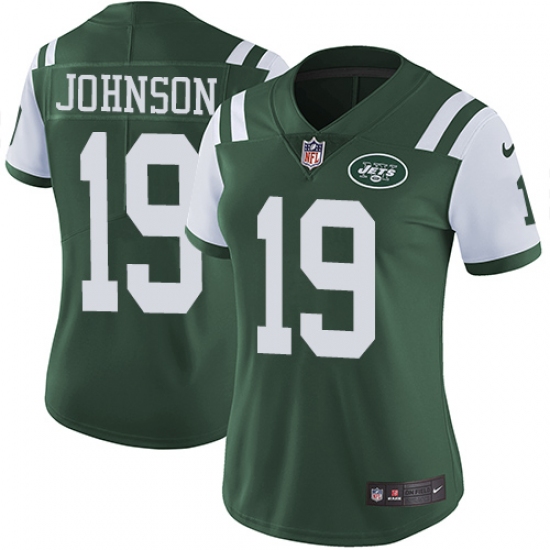 Home>NFL>New York Jets>Keyshawn Johnson>Women's Nike New York Jets #19 Keyshawn Johnson Green Team Color Vapor Untouchable Limited Player NFL Jersey