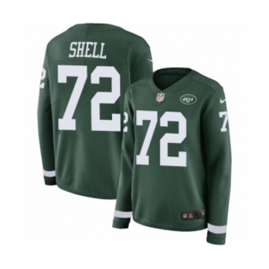 >Women's Nike New York Jets #72 Brandon Shell Limited Green Therma Long Sleeve NFL Jersey