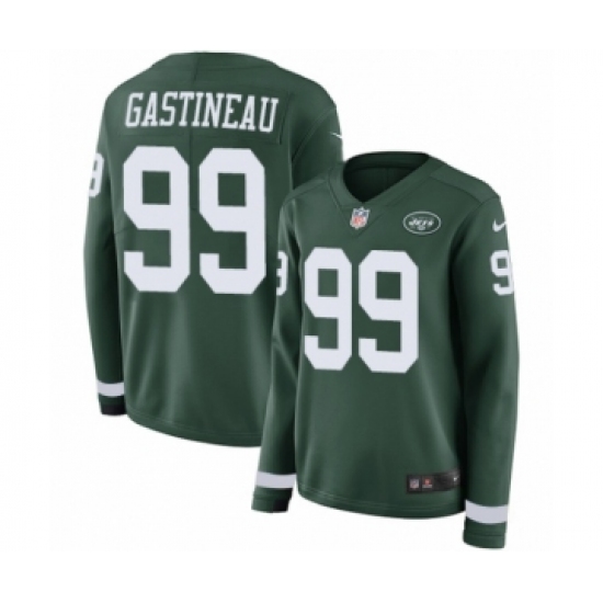 Women's Nike New York Jets #99 Mark Gastineau Limited Green Therma Long Sleeve NFL Jersey