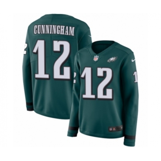 Women's Nike Philadelphia Eagles #12 Randall Cunningham Limited Green Therma Long Sleeve NFL Jersey