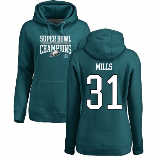 >Women's Nike Philadelphia Eagles #31 Jalen Mills Green Super Bowl LII Champions Pullover Hoodie
