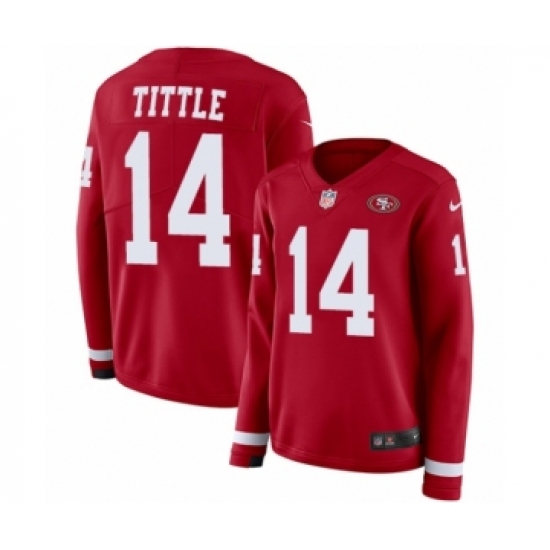 Women's Nike San Francisco 49ers #14 Y.A. Tittle Limited Red Therma Long Sleeve NFL Jersey