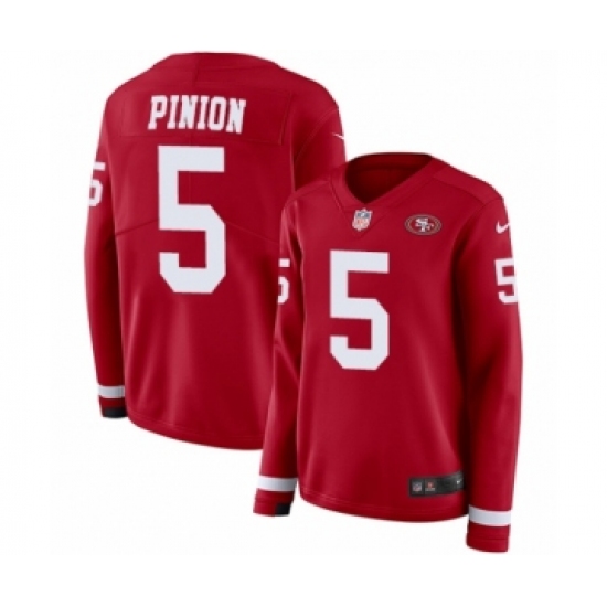 Women's Nike San Francisco 49ers #5 Bradley Pinion Limited Red Therma Long Sleeve NFL Jersey