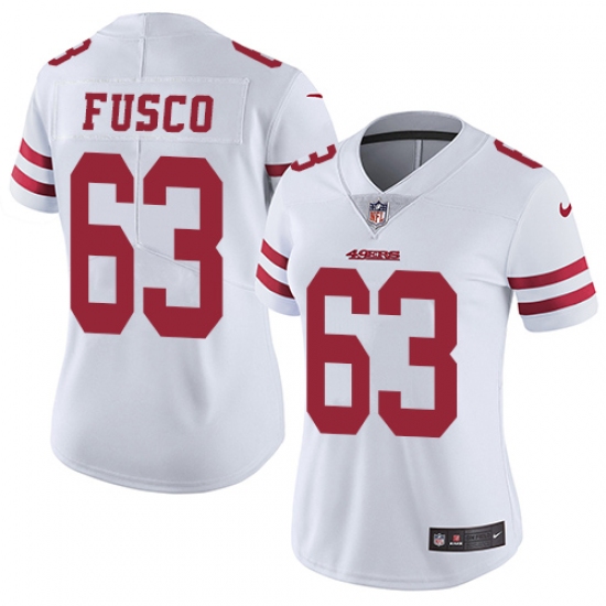 Women's Nike San Francisco 49ers #63 Brandon Fusco White Vapor Untouchable Limited Player NFL Jersey