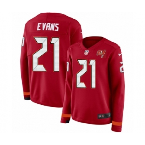 >Women's Nike Tampa Bay Buccaneers #21 Justin Evans Limited Red Therma Long Sleeve NFL Jersey