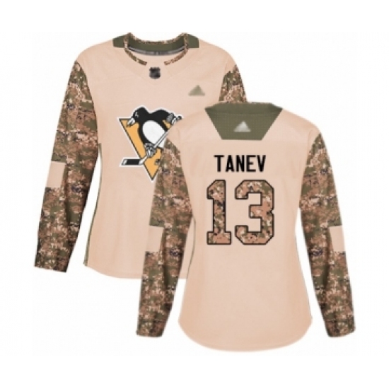 >Women's Pittsburgh Penguins #13 Brandon Tanev Authentic Camo Veterans Day Practice Hockey Jersey