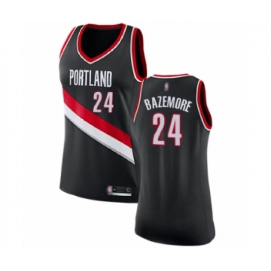 >Women's Portland Trail Blazers #24 Kent Bazemore Swingman Black Basketball Jersey - Icon Edition