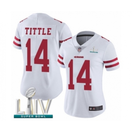 >Women's San Francisco 49ers #14 Y.A. Tittle White Vapor Untouchable Limited Player Super Bowl LIV Bound Football Jersey