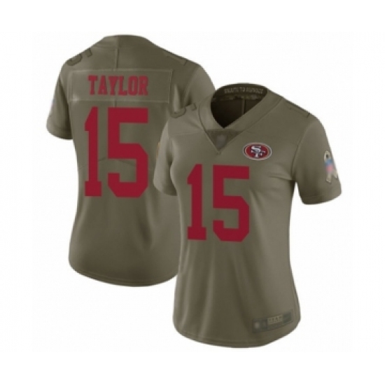 >Women's San Francisco 49ers #15 Trent Taylor Limited Olive 2017 Salute to Service Football Jersey