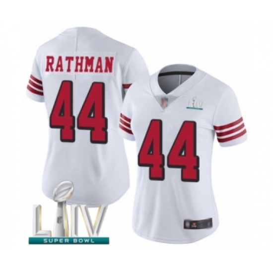 Women's San Francisco 49ers #44 Tom Rathman Limited White Rush Vapor Untouchable Super Bowl LIV Bound Football Jersey