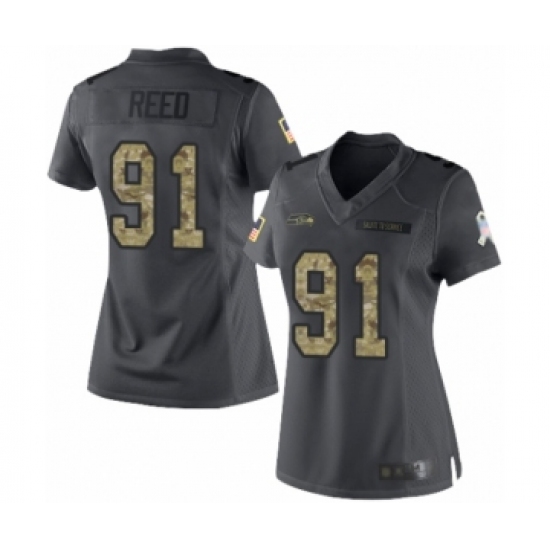 Women's Seattle Seahawks #91 Jarran Reed Limited Black 2016 Salute to Service Football Jersey