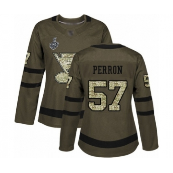 Women's St. Louis Blues #57 David Perron Authentic Green Salute to Service 2019 Stanley Cup Final Bound Hockey Jersey