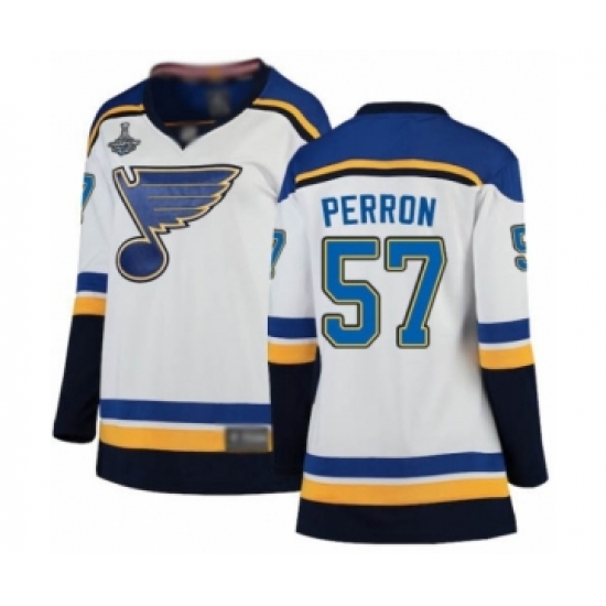 Women's St. Louis Blues #57 David Perron Fanatics Branded White Away Breakaway 2019 Stanley Cup Champions Hockey Jersey
