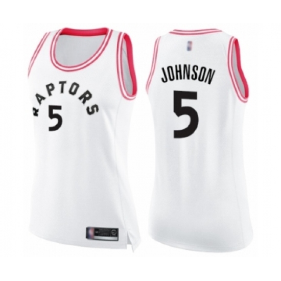>Women's Toronto Raptors #5 Stanley Johnson Swingman White Pink Fashion Basketball Jersey