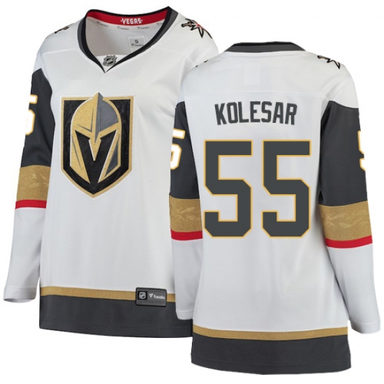 >Women's Vegas Golden Knights #55 Keegan Kolesar Authentic White Away Fanatics Branded Breakaway NHL Jersey