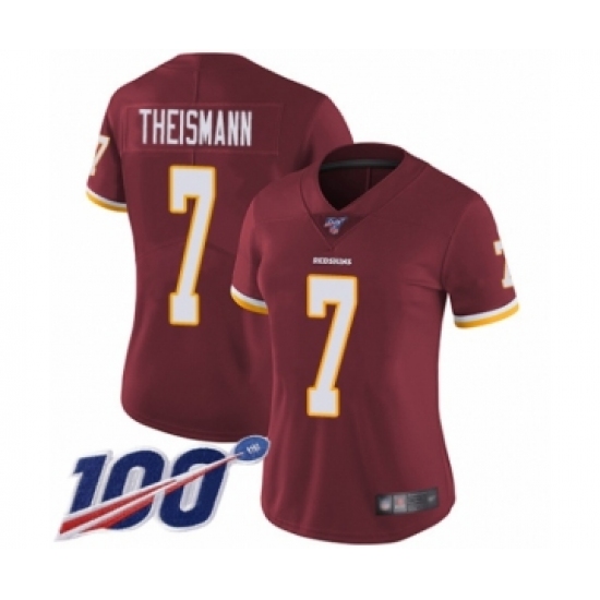 Women's Washington Redskins #7 Joe Theismann Burgundy Red Team Color Vapor Untouchable Limited Player 100th Season Football Jersey