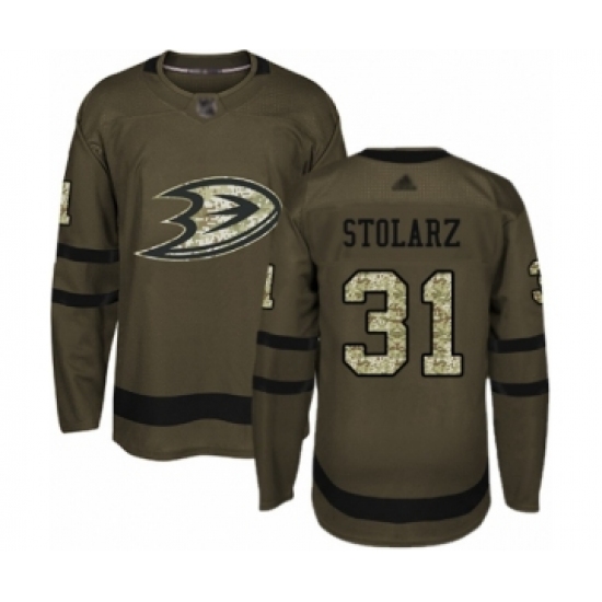Men's Anaheim Ducks #31 Anthony Stolarz Authentic Green Salute to Service Hockey Jersey