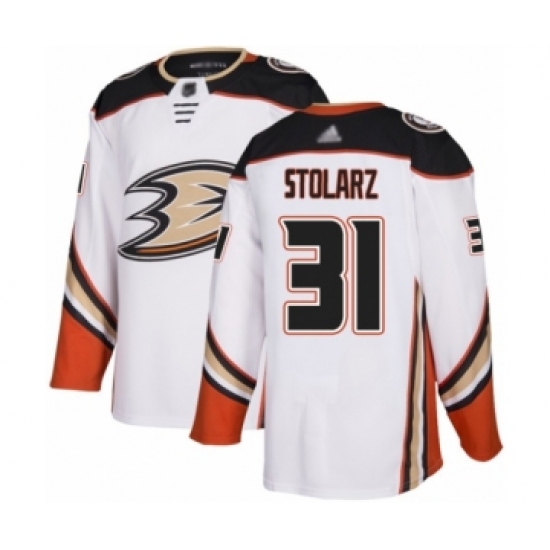 >Youth Anaheim Ducks #31 Anthony Stolarz Authentic White Away Hockey Jersey