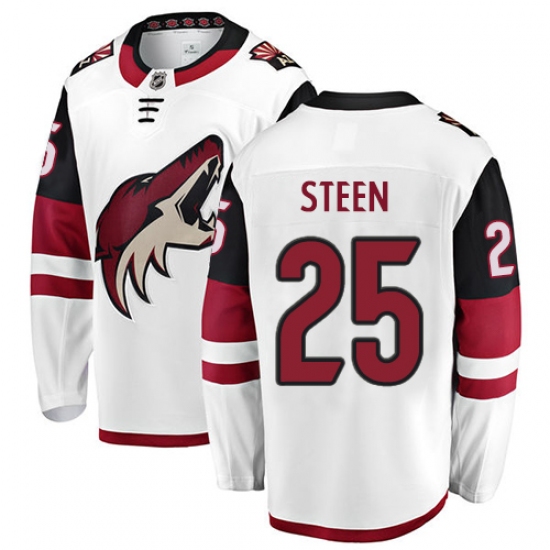 Home>NHL>Arizona Coyotes>Thomas Steen>Youth Arizona Coyotes #25 Thomas Steen Authentic White Away Fanatics Branded Breakaway NHL Jersey