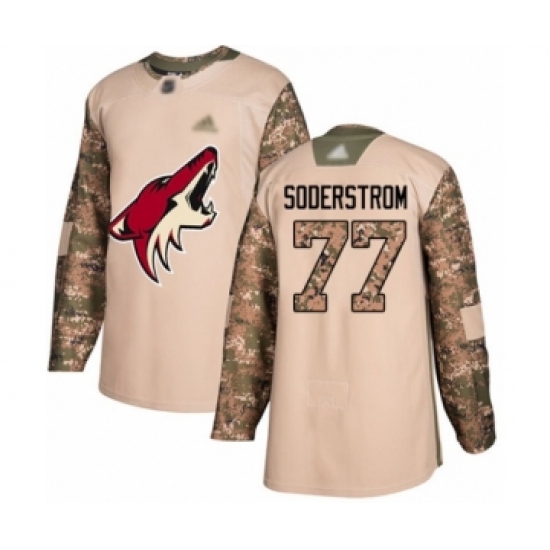 Men's Arizona Coyotes #77 Victor Soderstrom Authentic Camo Veterans Day Practice Hockey Jersey