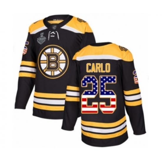 Youth Boston Bruins #25 Brandon Carlo Authentic Black USA Flag Fashion 2019 Stanley Cup Final Bound Hockey Jersey