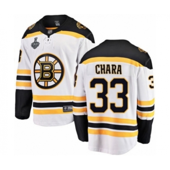 Men's Boston Bruins #33 Zdeno Chara Authentic White Away 2019 Stanley Cup Final Bound Hockey Jersey