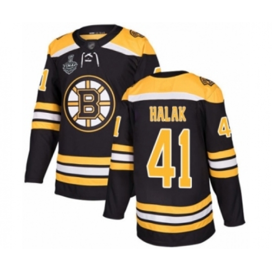 Men's Boston Bruins #41 Jaroslav Halak Authentic Black Home 2019 Stanley Cup Final Bound Hockey Jersey
