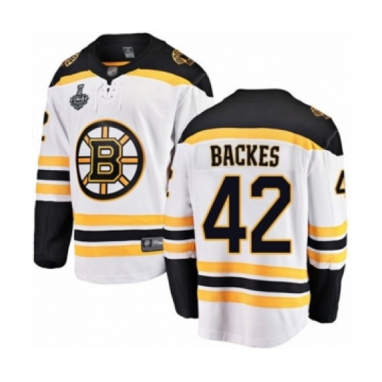 Youth Boston Bruins #42 David Backes Authentic White Away Fanatics Branded Breakaway 2019 Stanley Cup Final Bound Hockey Jersey