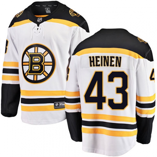 Home>NHL>Boston Bruins>Danton Heinen>Youth Boston Bruins #43 Danton Heinen Authentic White Away Fanatics Branded Breakaway NHL Jersey