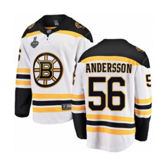 Men's Boston Bruins #56 Axel Andersson Authentic White Away Fanatics Branded Breakaway 2019 Stanley Cup Final Bound Hockey Jersey