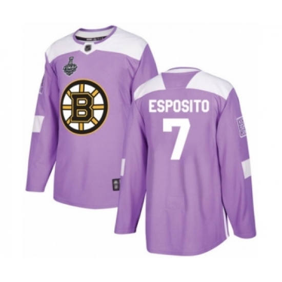 >Youth Boston Bruins #7 Phil Esposito Authentic Purple Fights Cancer Practice 2019 Stanley Cup Final Bound Hockey Jersey