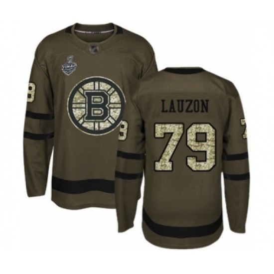 >Youth Boston Bruins #79 Jeremy Lauzon Authentic Green Salute to Service 2019 Stanley Cup Final Bound Hockey Jersey