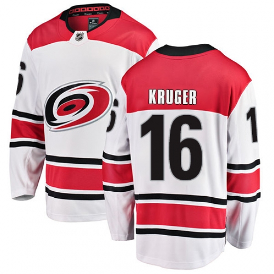 Home>NHL>Carolina Hurricanes>Marcus Kruger>Youth Carolina Hurricanes #16 Marcus Kruger Fanatics Branded White Away Breakaway NHL Jersey